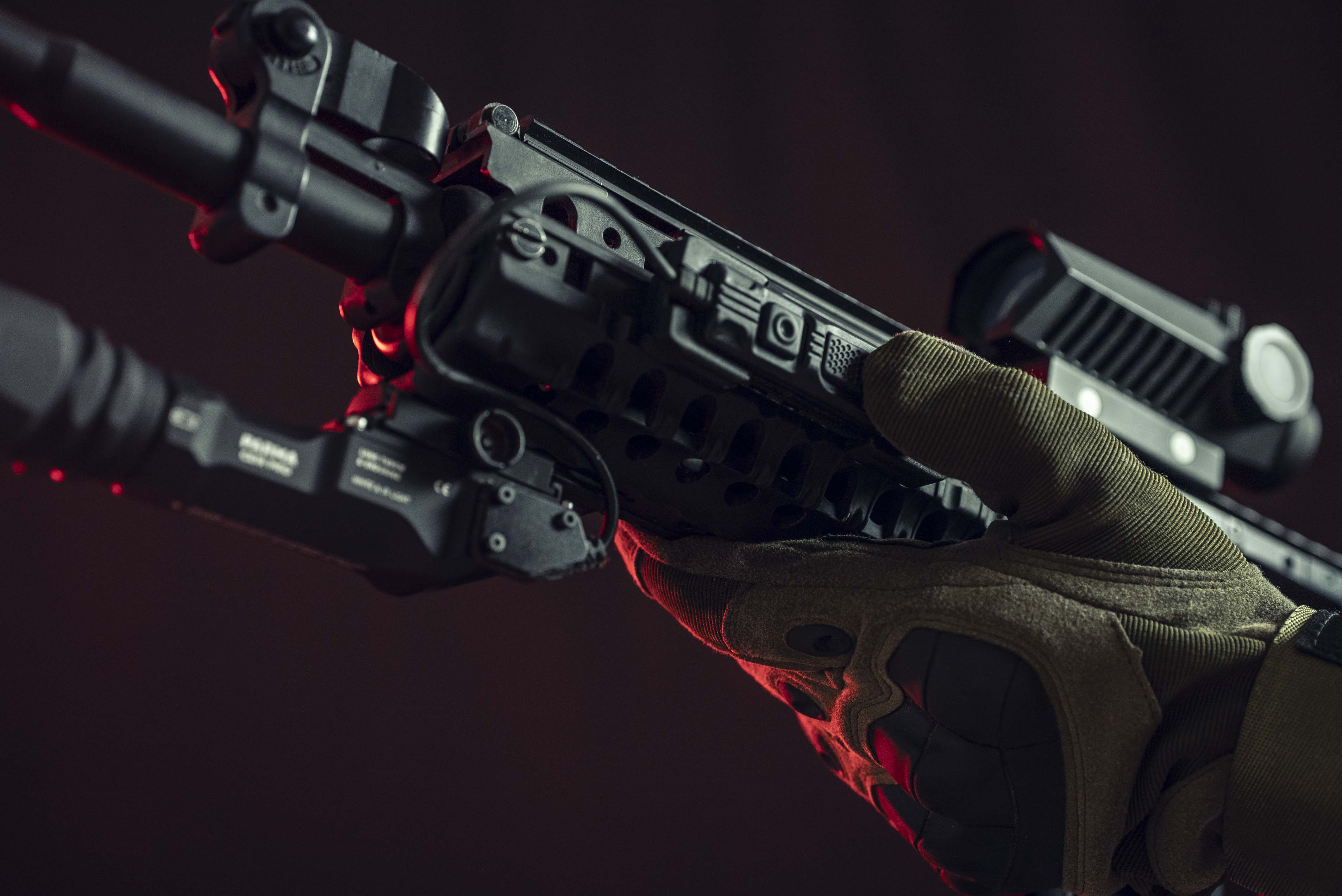 - Luz blanca para iluminación y apuntamiento preliminar al objetivo usando el punto de luz, modo estroboscópico para desorientar al adversario