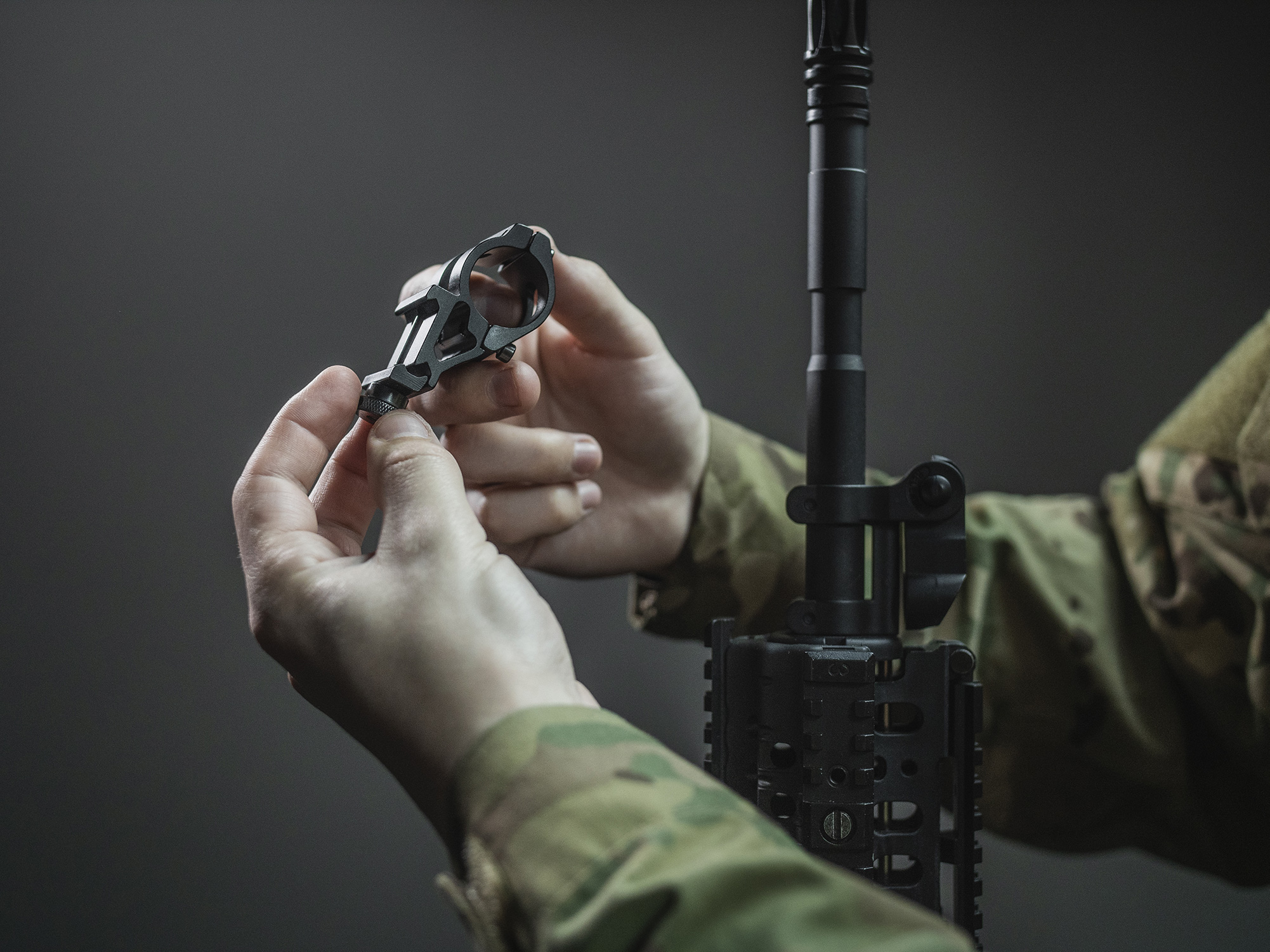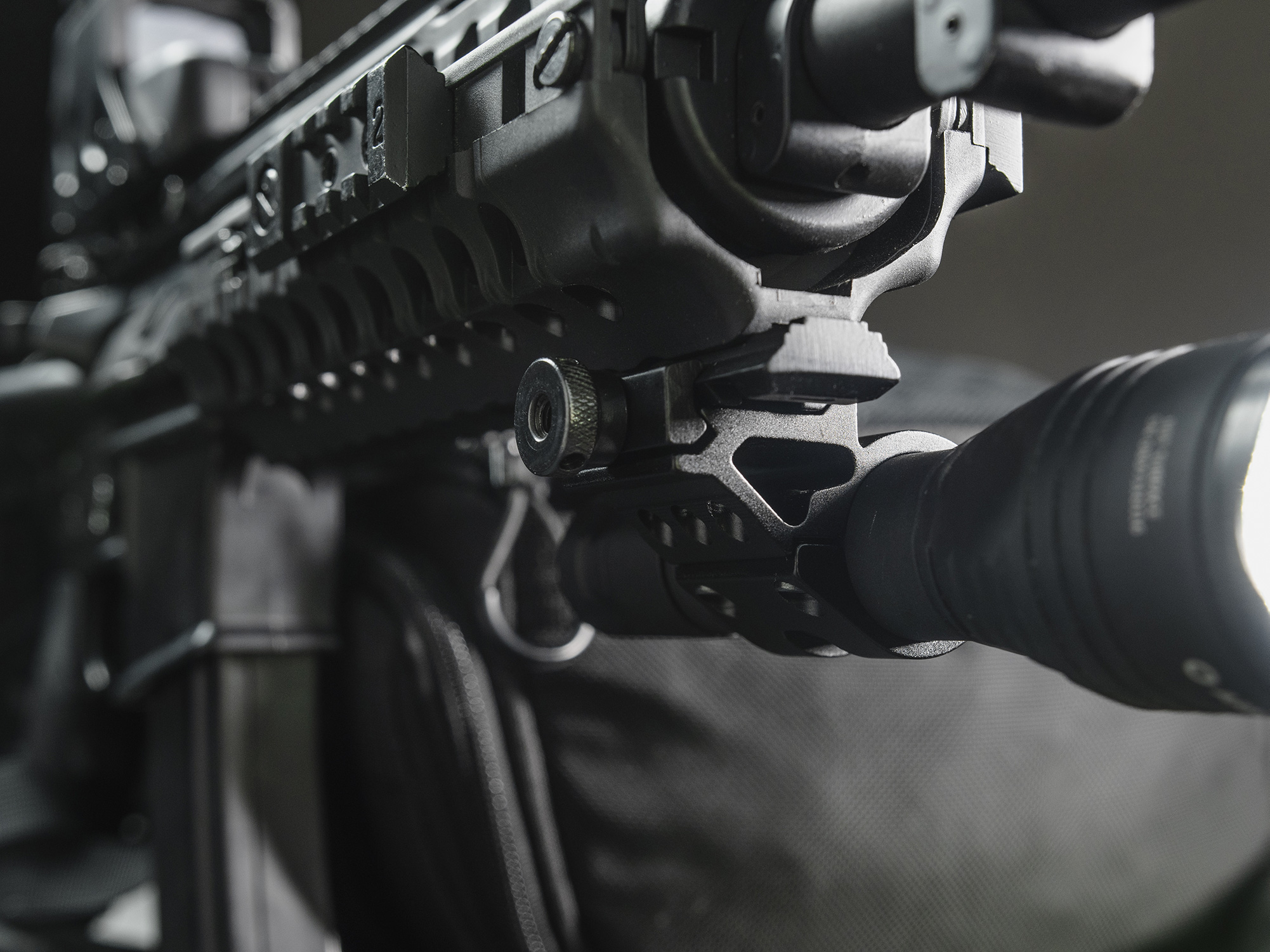 El AWM-06 es un soporte universal para instalación en rieles Picatinny. Ofrece varias opciones de fijación, incluyendo un práctico montaje lateral de la linterna. Su ubicación cerca del cañón permite cambiar de modo sin necesidad de un interruptor remoto. Este modelo también es compatible con el sistema de montaje de rieles ARC para cascos.