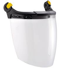 Pantalla ultra envolvente para proteger el rostro completamente contra los peligros del arco eléctrico. Piezas de fijación para una instalación fácil en los cascos VERTEX (última versión) y ALVEO